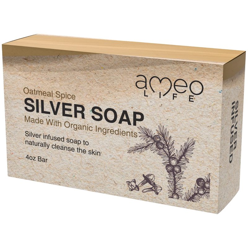 Ameo Life Oatmeal Spice Silver Soap with 30ppm Silver - Naturally Cleanses the Skin, 4 oz Colloidal Silver Soap Bar for Women and Men