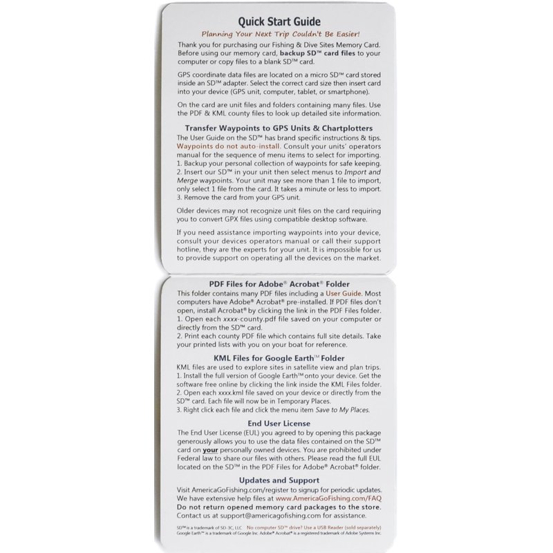 America Go Fishing - Fishing and Dive Sites Memory Card – Okaloosa and Walton Counties Florida