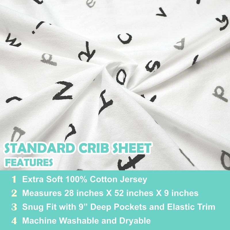 - Quality Cotton Jersey Design: Crafted from premium 100% Cotton Jersey, these sheets prioritize your baby's comfort and safety. With a snug fit and durable, machine-washable fabric, they maintain quality, lasting shape, and enduring durability.