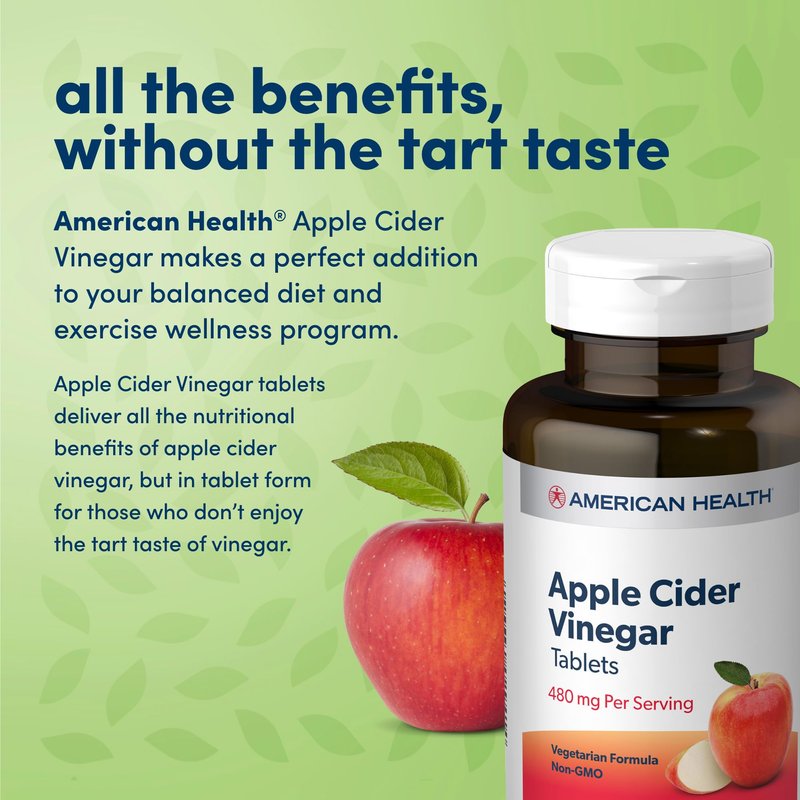 - Apple Cider Vinegar; Popular with fitness enthusiasts and individuals following healthy diets, American Health Apple Cider Vinegar can be added to your balanced diet and wellness program.