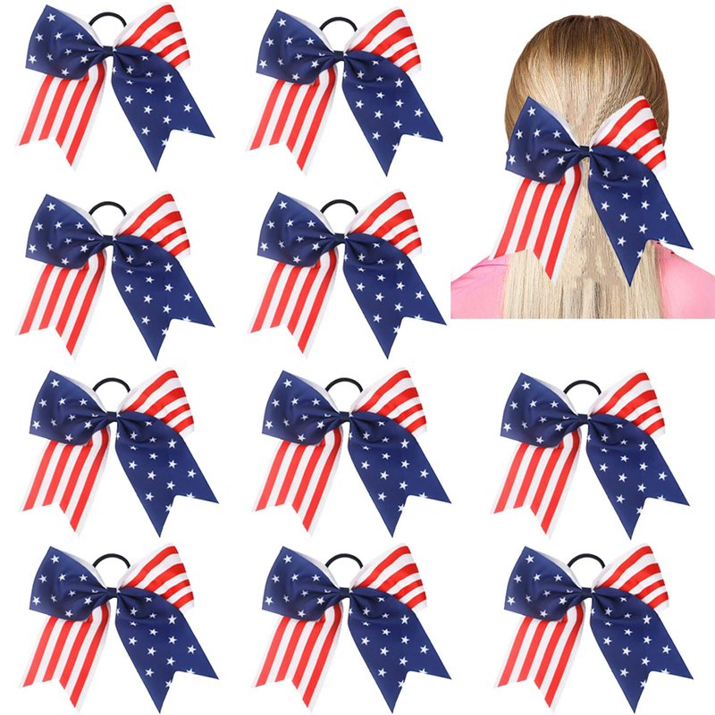 - ★HOW TO WEAR HAIR TIES ACCESSORIES-- To maximize the lifespan of your bow, secure the hair in a separate ponytail holder or clip first before adding your flag cheer bow. This will help prevent overstretching.