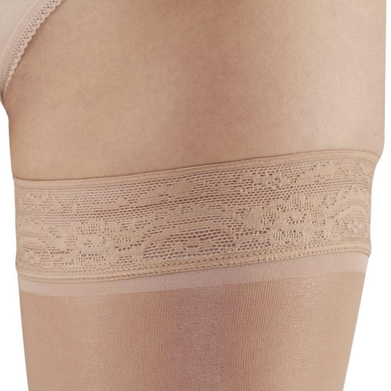Ames Walker AW Style 285 Signature Sheers 20-30 mmHg Firm Compression Closed Toe Thigh High Stockings w/Top Band LtBeige Medium