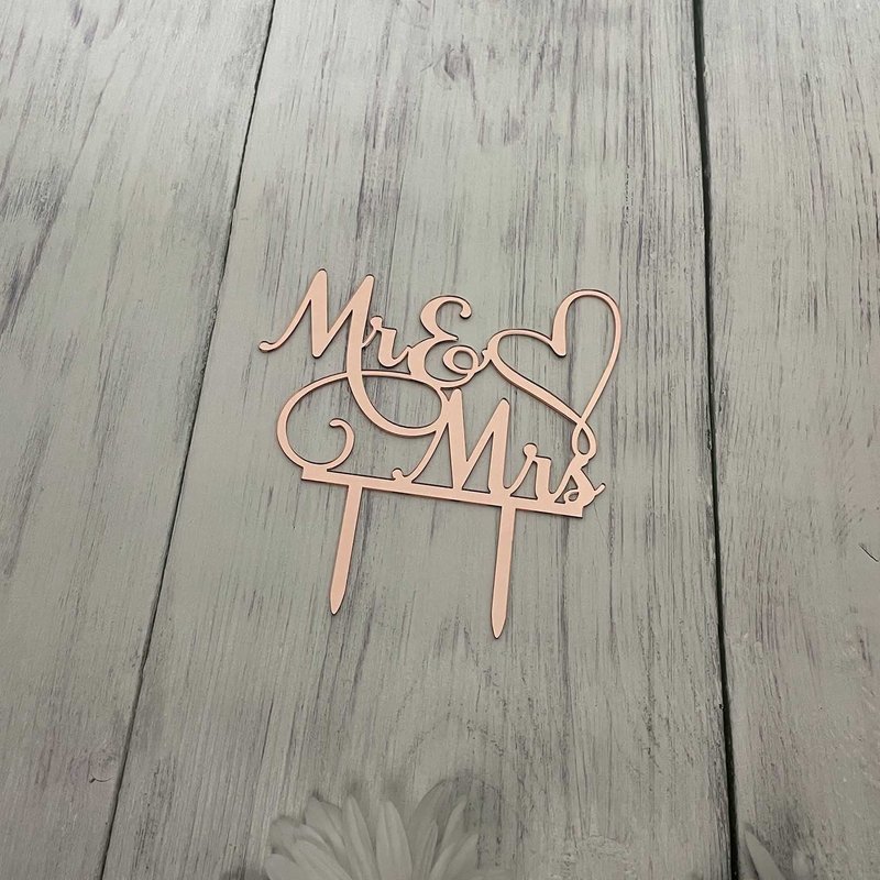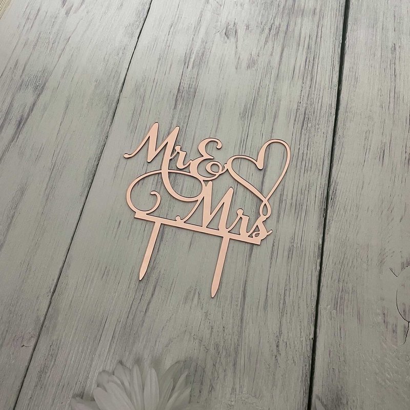 Mr and Mrs Cake Topper - Bride and Groom Sign Wedding / Engagement Cake Toppers Decoration, Mirror Rose Gold Acrylic.
