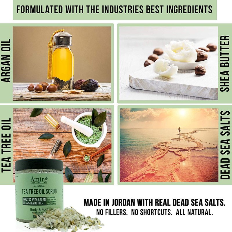 - DEEP CLEANSING & EXFOLIATING: Made using a blend of Tea Tree Oil, Dead Sea Salt Minerals, and other natural ingredients, Amire body and foot exfoliator scrubs provide deep and powerful cleansing while being gentle on your skin to remove dead skin cells to reveal smooth, supple skin