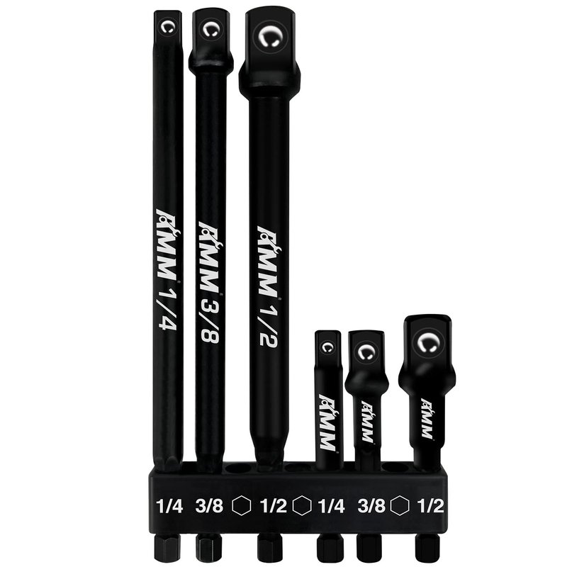 AMM 6-Piece Impact Grade Socket Adapter Set, 3-Inch & 6-Inch Power Drill Socket Driver Adaptor, 1/4", 3/8", 1/2" Hex Shank Adapt Your Power Drill To High Torque Impact Wrench