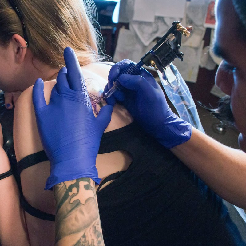 Ammex medical exam grade latex free glove. Made of nitrile. Combining superior comfort, strength, tactile sensitivity and protection perfect for professional applications in an indigo color. Providing textured non-slip grip plus a powder free interior which eliminates powder residue. Possible sales opportunities: EMT, police, prison personnel, tattoo parlors, dental, food service. Small size.
