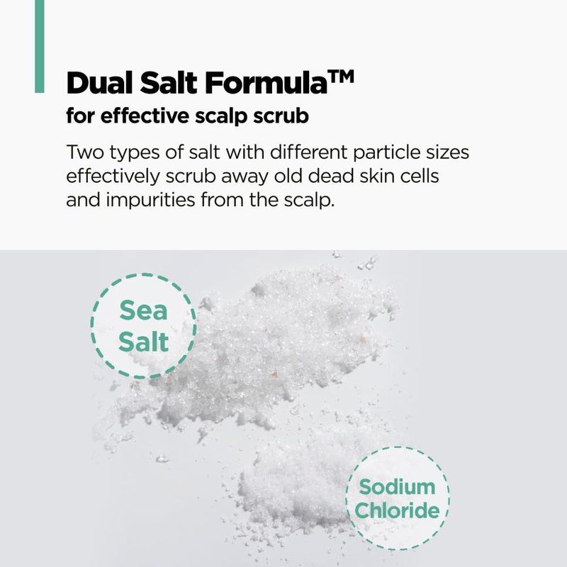 - ·SCALP SCRUB CLEANSING: Formulated with dual salt of different sizes to effectively cleanse dandruff and impurities.