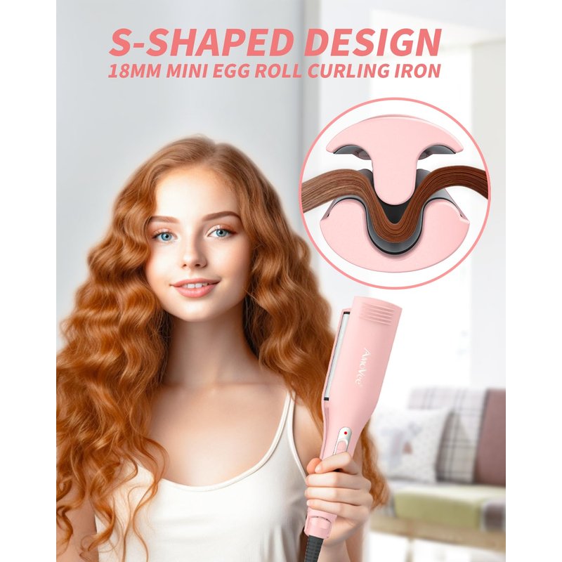 - [Tourmaline Ceramic Technology]AmoVee mini hair waver curling iron combines ceramic technology with tourmaline. The ceramic coating helps distribute heat evenly along each strand and helps to get rid of flyaway hair and smoothens it out, which seals moisture into your hair, helps reduce frizz, static and add extra shine. PTC heating professional tech to heat fast curling wand, allowing you to use it without damage your hair