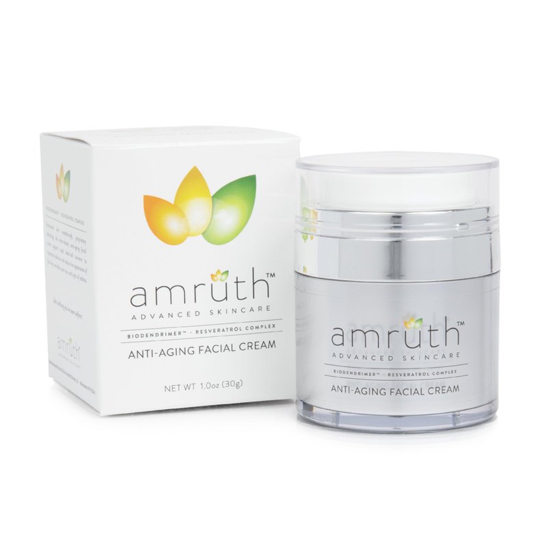 Amruth Resveratrol Daily Anti-Aging Facial Cream, Lightweight Anti-Aging Cream, Firms and Nourishes Skin, Smooths Appearance of Fine Lines and Wrinkles, 1oz Jar with Pump