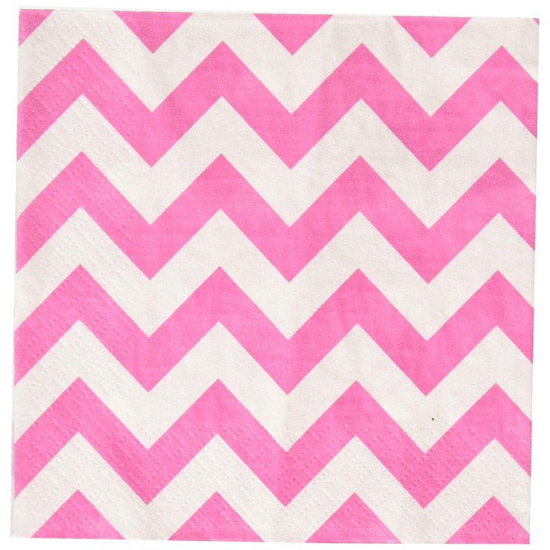Amscan Disposable, Chevron Beverage Napkins, Bright Party Supplies, 5" x 5", Pink/White