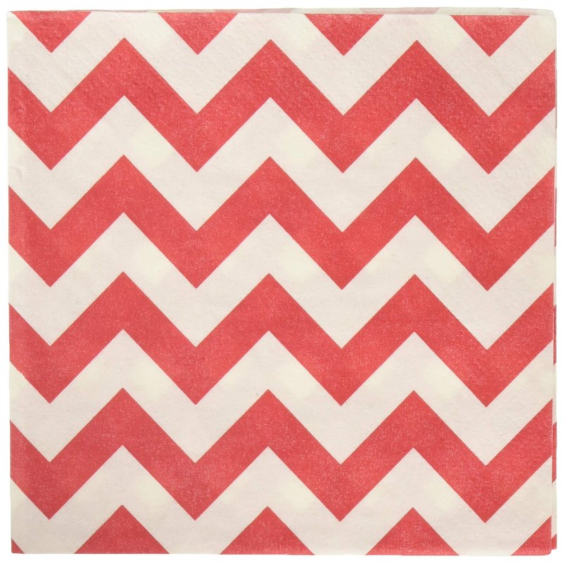 Amscan Disposable, Chevron Beverage Napkins, One Size 16ct Party Supplies, 5" x 5", Red/White