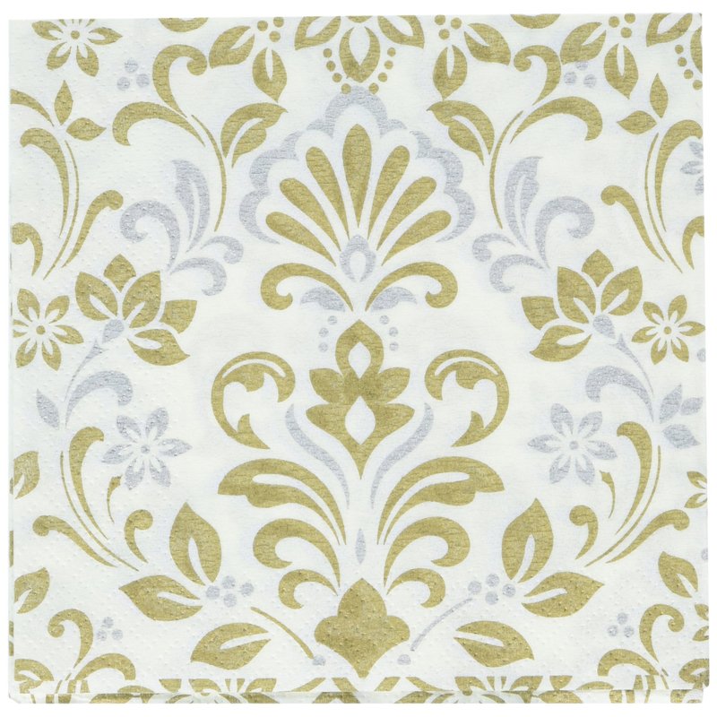 Amscan Durable Gold Damask Beverage Napkins Party (Pack of 16), Multicolor, 5" x 5"