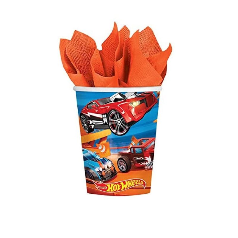 Hot Wheels Birthday Party Supplies Bundle Pack includes 16 Party Paper Cups 9oz.