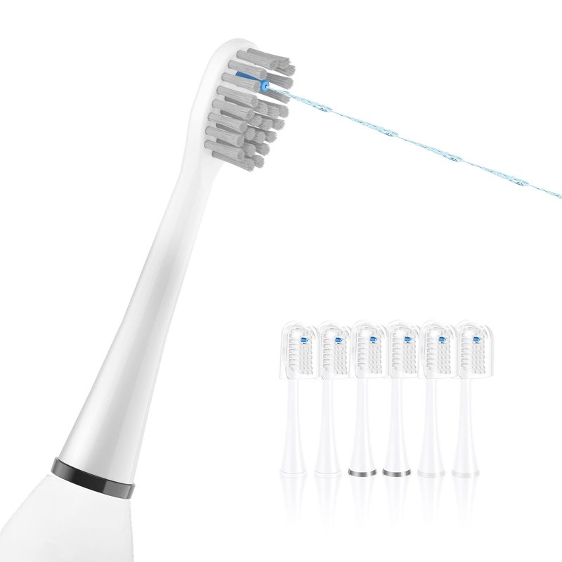 - FULL/COMPACT BLACK/WHITE BRUSHHEADS: 6 brushheads with 3 different color rings: 2*black, 2*grey and 2*white which could help you and your family use them seperately and replace the flossing toothbrush heads every three months clearly.