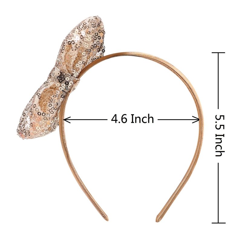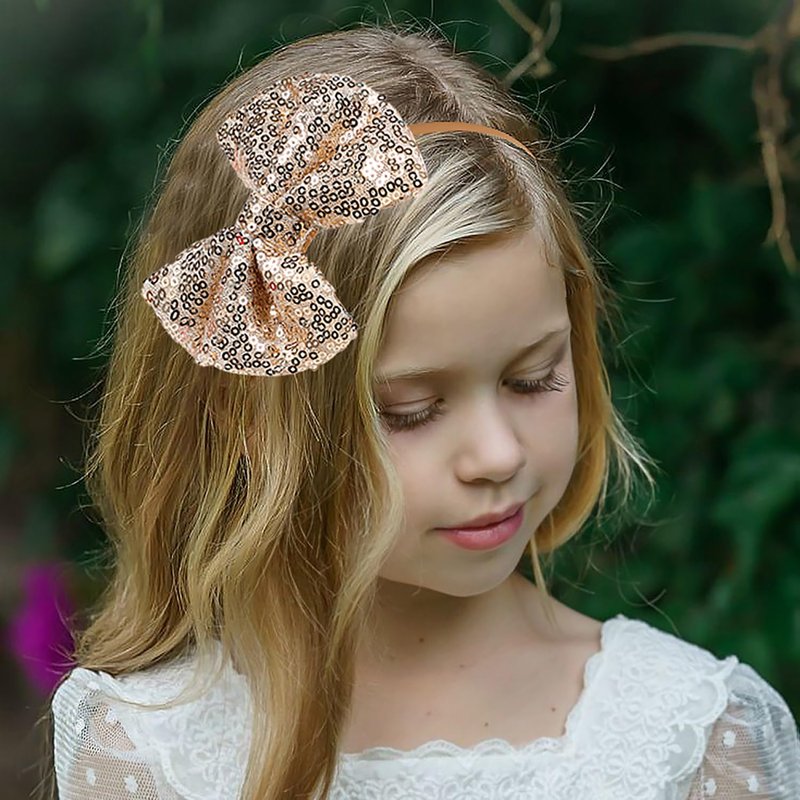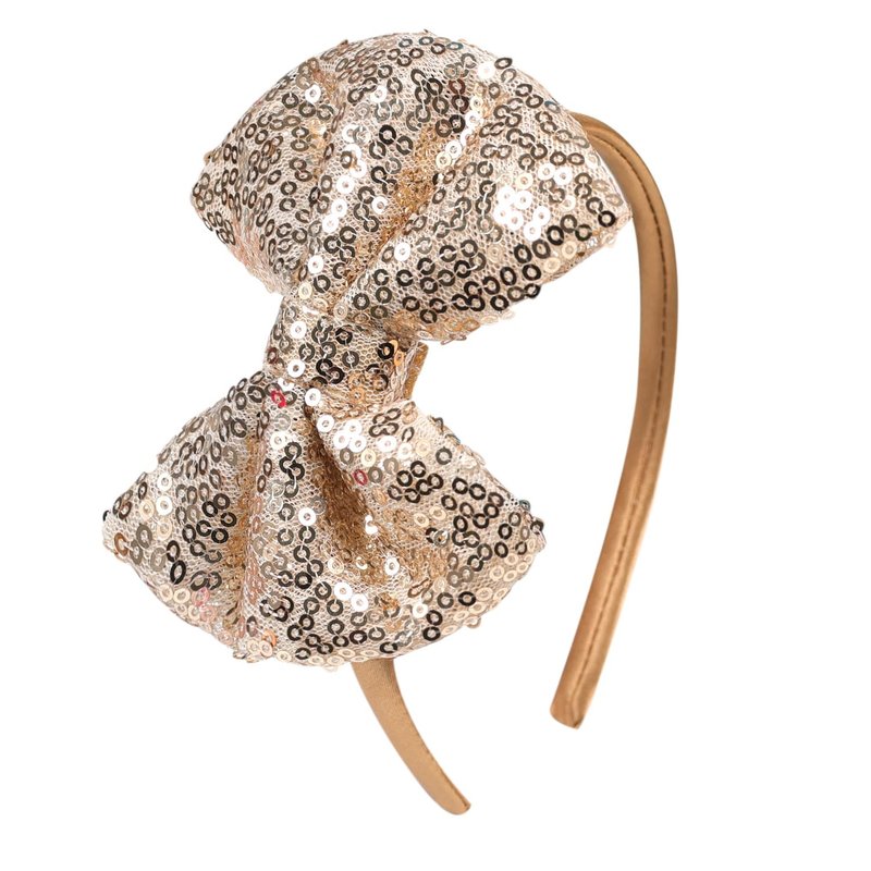 AMYDECOR Love Fairy 4.3-Inch Sparkly Sequin Bow Tie Headbands - Boutique Ribbon Bows for Girls, Kids, and Women (Gold)