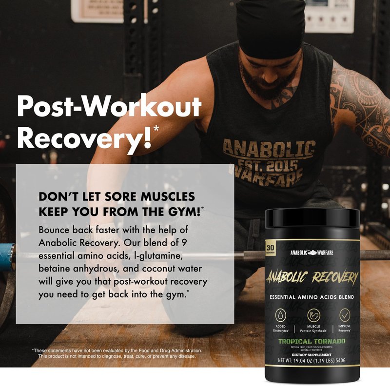- Maximum Strength* - Don’t let your gains go to waste because of poor after-workout habits. Make the most of your training when you take Anabolic Recovery. This game-changing post-workout supplement is unlike anything on the market today. We’ve carefully formulated this product with L-glutamine, betaine anhydrous, and essential amino acids to support your hard-earned strength and promote optimal muscle recovery.*