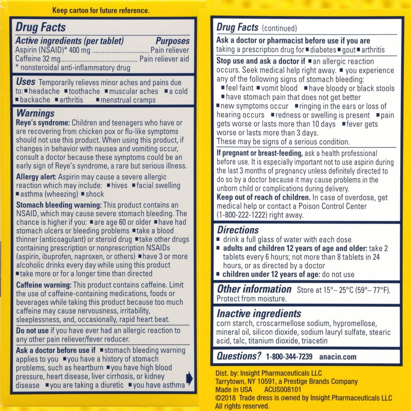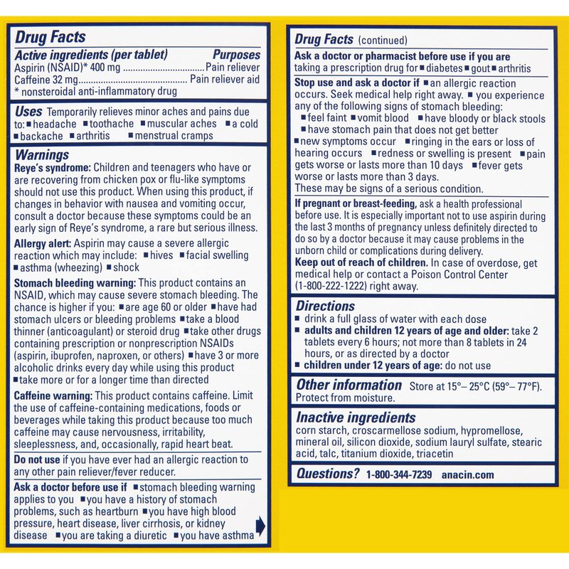 - Trusted, Safe and Effective with 400mg Aspirin plus 32mg Caffeine that acts as a pain reliever aid