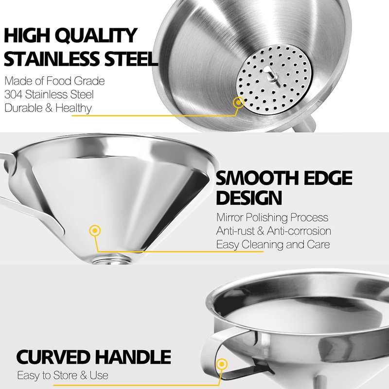 - 【 SAFE & LONG-LASTING 】: Anaeat Stainless Steel Funnel is made of professional food grade material, which resist corrosion, No Bending, No Scratching and No leaking. BPA free & Heat resistant at -40°C to 250°Celsius, with its Durable, long lasting ,hard to break materials, you might rest assured the quality of our product.