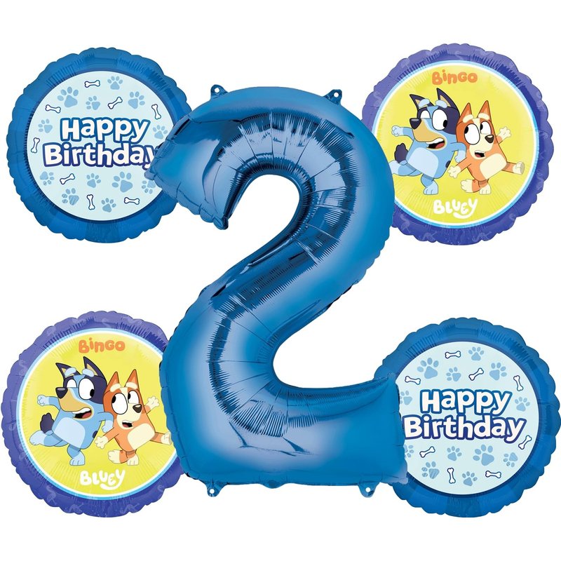 - (1) 34" Giant Blue Number 2 Foil Balloon, (2) 17" Round Bluey Foil Balloons and (2) 18" Round Paw Print and Dog Bone Happy Birthday Foil Balloons. All Balloons Ship Flat. Ribbon Not Included. All Anagram Licensed Balloons are Made in USA. Founded in 1977, Anagram International leads the world in innovating and manufacturing foil balloons.