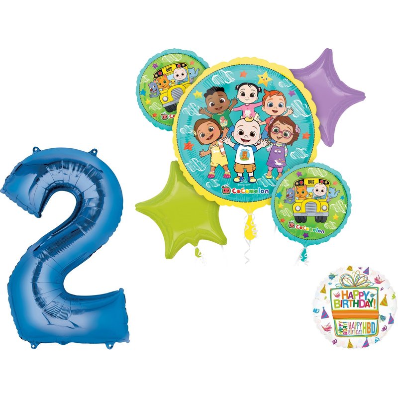Anagram Cocomelon Boy 2nd Birthday Party Supplies Foil Balloon Bouquet Decorations