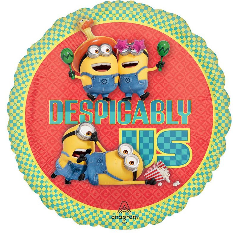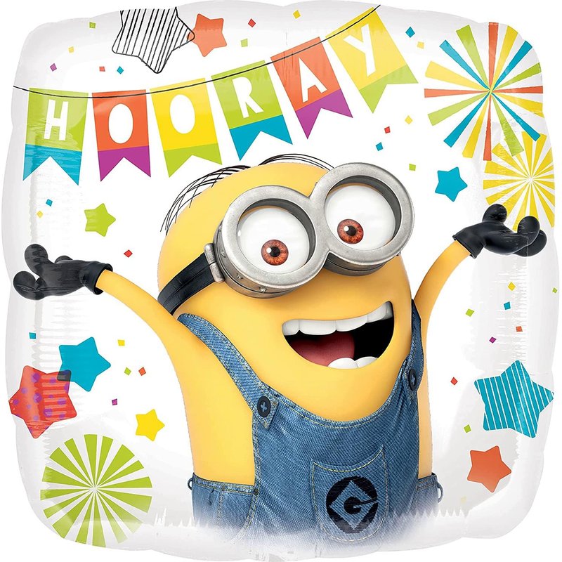 - (1) 61" HUGE Minions Stacker Foil Balloon, (1) 12" Air Filled Inflate-A-Fun hand held wand foil balloon, (1) 17" Despicable Us Round Foil Balloon, (1) 25" Waving Minion Foil Balloon, (2) 17" Minions Square Party Balloons, (2) 19 inch Orange Star Foil Balloons and (1) 18" Mayflower Products Happy Birthday Present Foil Balloon. Ribbon Not Included. All Anagram Licensed Balloons are Made in USA. Founded in 1977, Anagram International leads the world in innovating and manufacturing foil balloons.