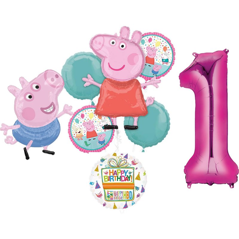 - (1) 32" Peppa Foil Balloon, (1) 24" George Foil Balloon, (2) 17" Round Peppa Foil Balloons, (1) 34" Giant Pink Number 1 Foil Balloon, (1) 18" Mayflower Products Happy Birthday Present Foil Balloon and (2) 18" Round Robins Egg Foil Balloons. Ribbon Not Included. All Anagram Licensed Balloons are Made in USA. Founded in 1977, Anagram International leads the world in innovating and manufacturing foil balloons.
