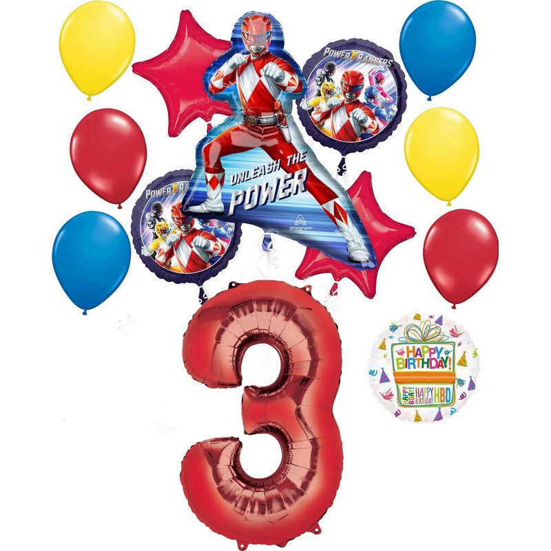 - (1) 34" Giant Red Number 3 Foil Balloon, (1) 27" Red Ranger Power Rangers Foil Balloon, (2) 17" Power Rangers Round Foil Balloons, (1) 18" Mayflower Products Happy Birthday Present Foil Balloon, (2) 19" Red Star Foil Balloon and (6) 11" Latex Balloons 2 each of Red, Blue and Yellow. Ribbon Not Included. All Anagram Licensed Balloons are Made in USA. Founded in 1977, Anagram International leads the world in innovating and manufacturing foil balloons.