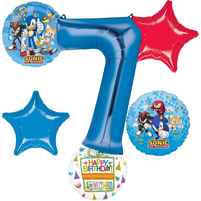 Anagram Sonic 7th Birthday Party Supplies Video Gamers Hedgehog Foil Balloon Bouquet Decorations 6pc