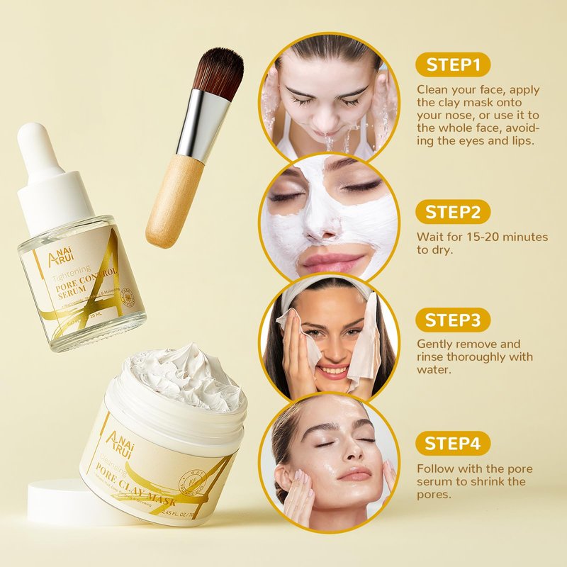 - 2 in 1 Pore SkinCare Set-- ANAI RUI Pore Skin Care Set includes a 2.45Oz(70g) Pore cleansing mask, a pore minimizer serum of 0.67fl.oz(20ml), and a soft brush. Say goodbye to pore skin troubles.
