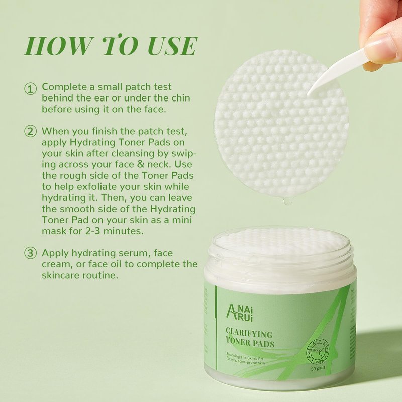 - Clarifying Toner Pads: ANAI RUI Clarifying Toner Pads are perfect day and night daily toner pads that can balanced skin's PH, hydrate and Clear your skin, and give you a healthier complexion. Each jar has 50 non-woven textured toner pads and one tweezer for easy application. Keeping the face pads dirt-free.