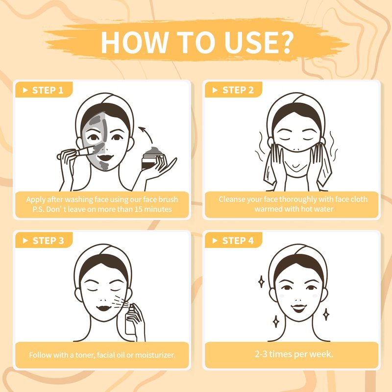 • Vitamin C Clay Mask-- Rich in Vitamin C extract, which has lots benefits for skin. The turmeric+vitamin C responsible for reduce the appearance of dark spots, fine lines, wrinkles and uneven skin tone, promote a more youthful complexion.