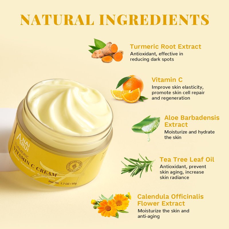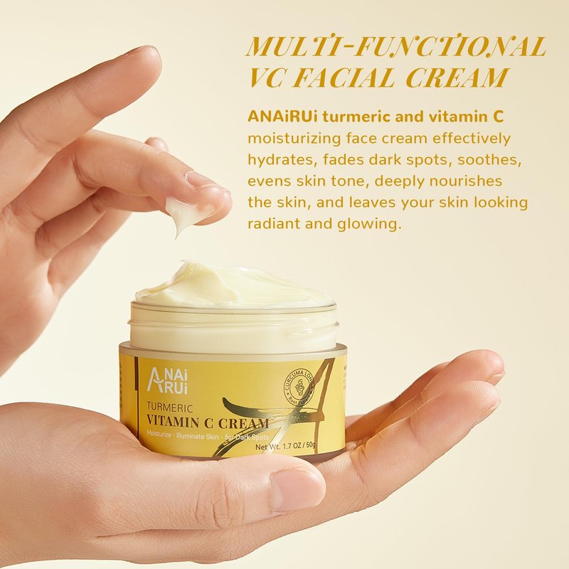 ANAI RUI Vitamin C Face Moisturizer, Turmeric Vitamin C Face Cream,Uneven Skin Tone and Wrinkles,Anti-Aging Facial Cream for Dull and Dry Skin, 1.7 OZ