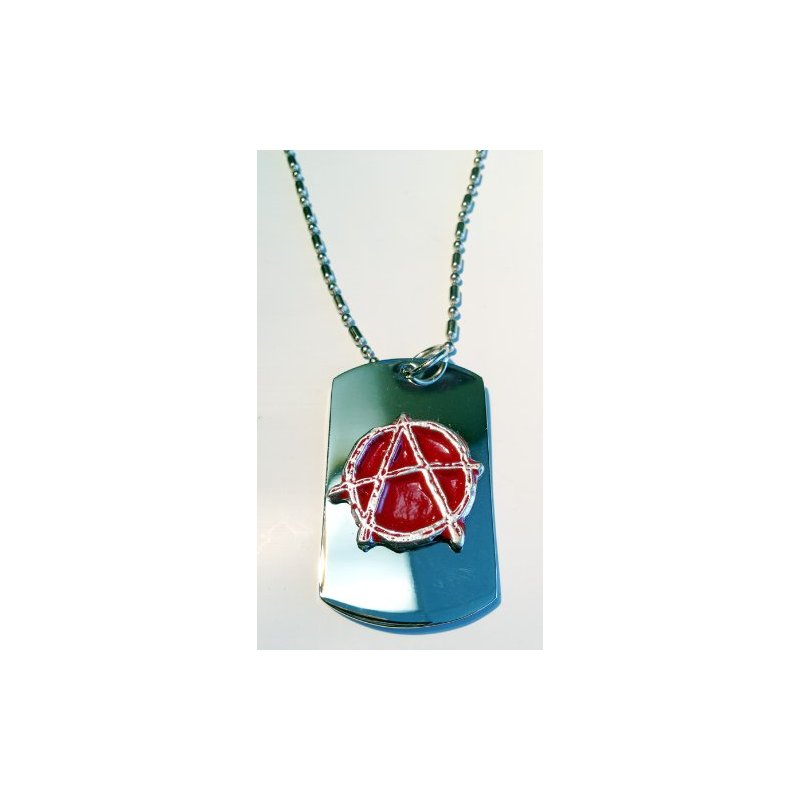 Anarchy Hand Painted Red Pewter Emblem Logo Symbols - Military Dog Tag Luggage Tag Key Chain Metal Chain Necklace