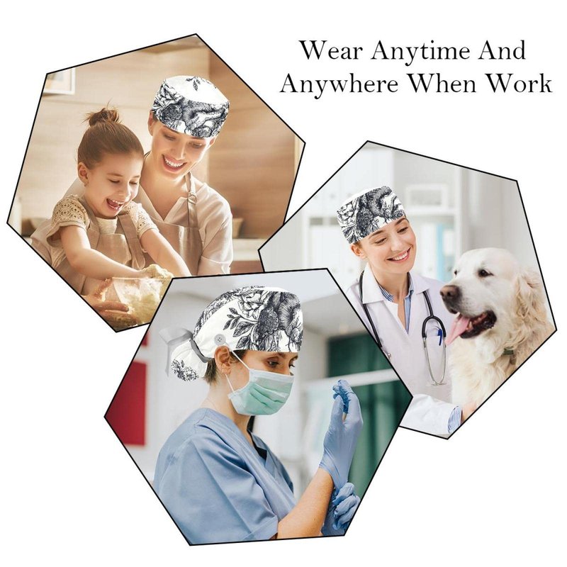 - This scrub cap with excellent elastic band and adjustable ribbon on the back. Simply adjust the tightness to fit different head shapes and hair types of men and women.