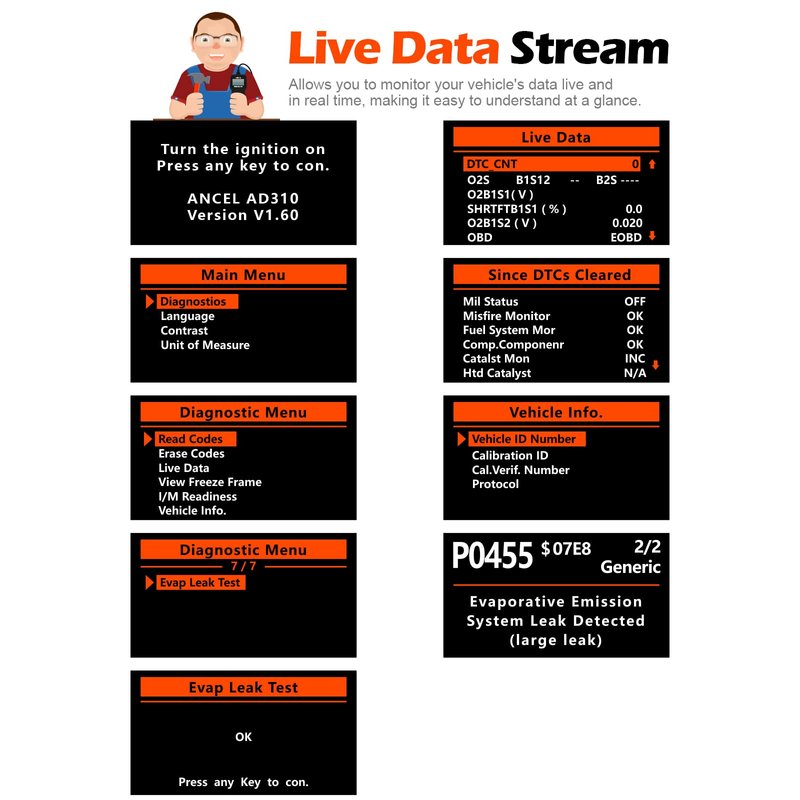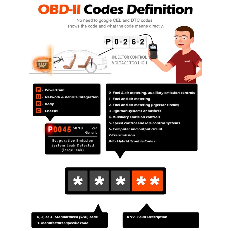 - CEL Doctor: The ANCEL AD310 is one of the best-selling OBD II scanners on the market and is recommended by Scotty Kilmer, a YouTuber and auto mechanic. It can easily determine the cause of the check engine light coming on, quickly read and clear diagnostic trouble codes, read live data & hard memory data, view freeze frame, I/M monitor readiness and collect vehicle information. Instead of taking car to mechanic shop, you can use it to check the trouble code and show code definition by yourself.
