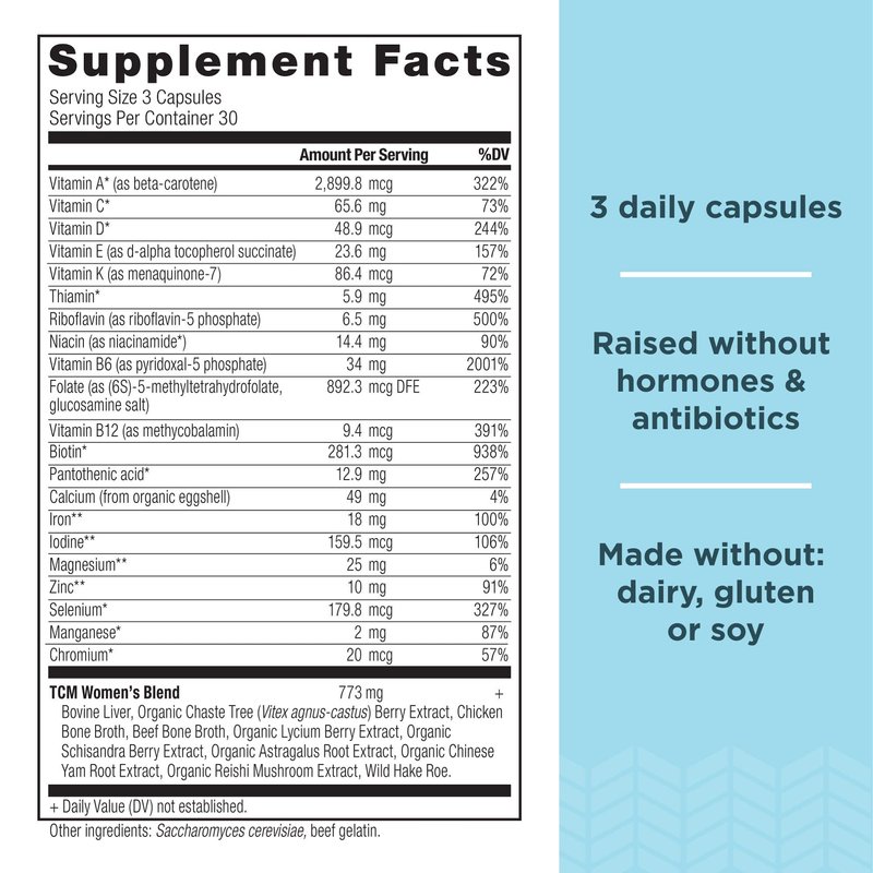 - CONVENIENCE- Take three capsules once per day with 8 oz. of water. Can be taken with or without food, any time of day. Great for women focused on thyroid, energy, and blood health.