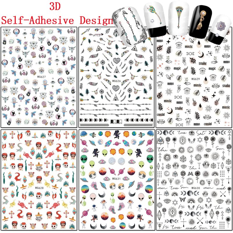 Indian Nail Art Adhesive Sticker, 3D Nail Art Design, A Variety of Patterns(Mysterious alien, Feather, Ancient tribal totem, UFO, Sun, Moon, Star, Eyes, Skull, Crocodile, Arrow) Nail Art Decoration for Fingernails Toenails Charms Nails Supplies.