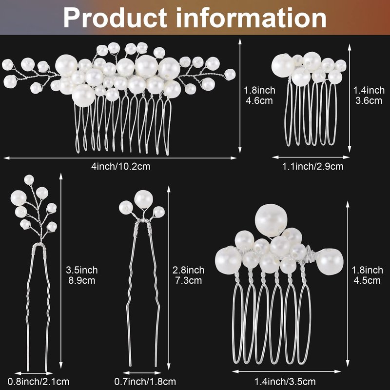 - Package include: 3 Pack Pearl Bride Wedding Hair Comb & 2 Pack Silver Bridal Side Hair Pins