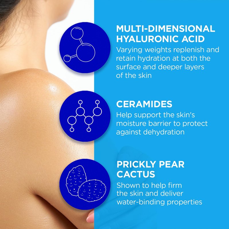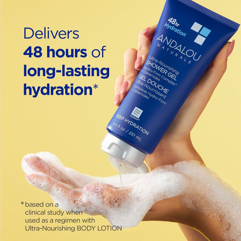 - 48 HOURS OF HYDRATION: A nourishing, moisturizing body wash with Ceramides and our proprietary Hydro-Firm Complex of multi-dimensional Hyaluronic Acid, Prickly Pear Elixir and Algae Oil, that lathers into a gentle cleansing foam