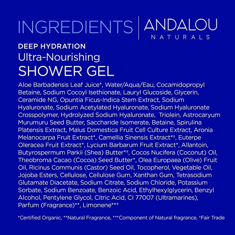 - DEEP HYDRATION SHOWER GEL: Immerse yourself in the soothing lather of our shower gel body wash, and wash away impurities without stripping essential moisture. This exfoliating body wash gently cleanses, leaving skin clean, moisturized and smooth