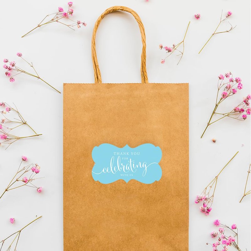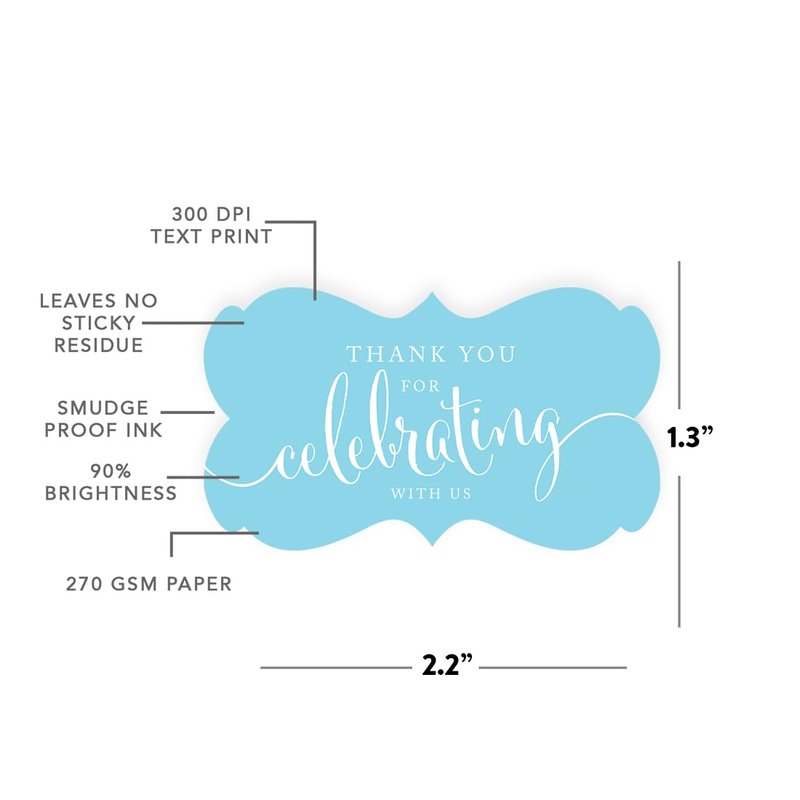 Andaz Press Fancy Frame Rectangular Label Stickers, Thank You for Celebrating with Us, Baby Blue, 36-Pack Wedding Decorations, Wedding Favors, Stickers for Packaging, Party Favor