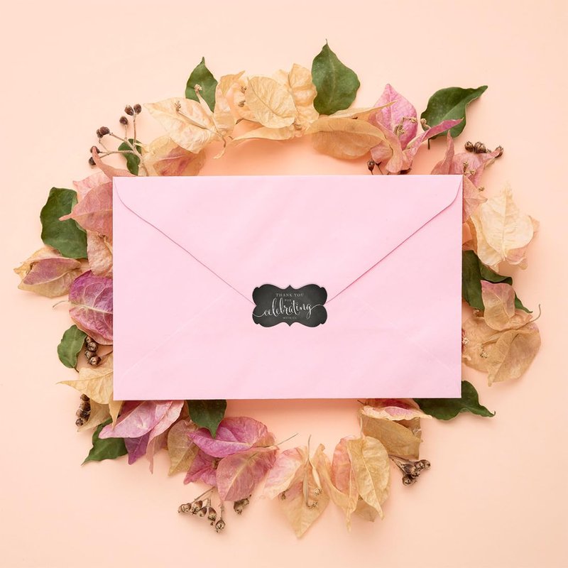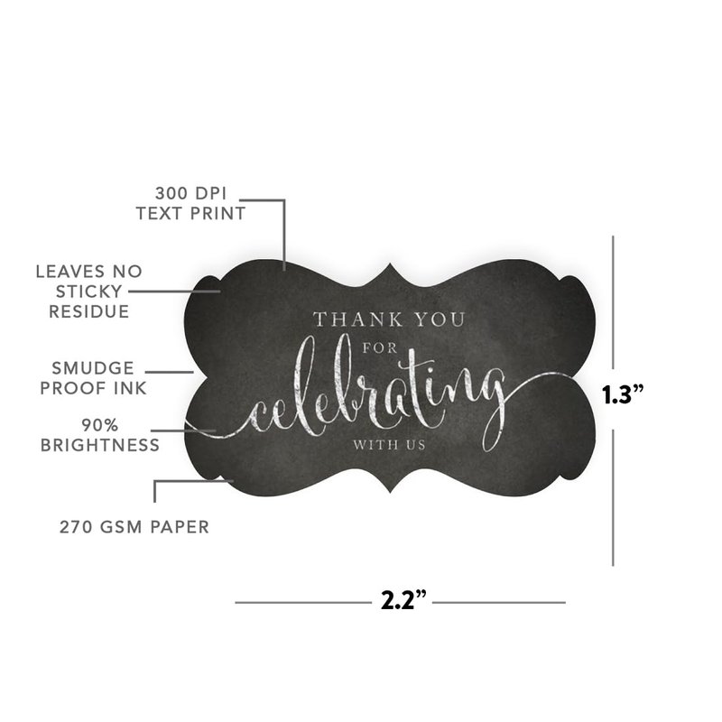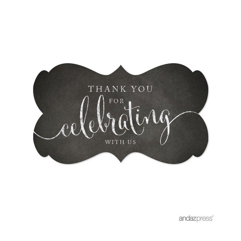 Andaz Press Fancy Frame Rectangular Label Stickers, Thank You for Celebrating with Us, Chalkboard Print, 36-Pack Wedding Decorations, Wedding Favors, Stickers for Packaging, Party Favor