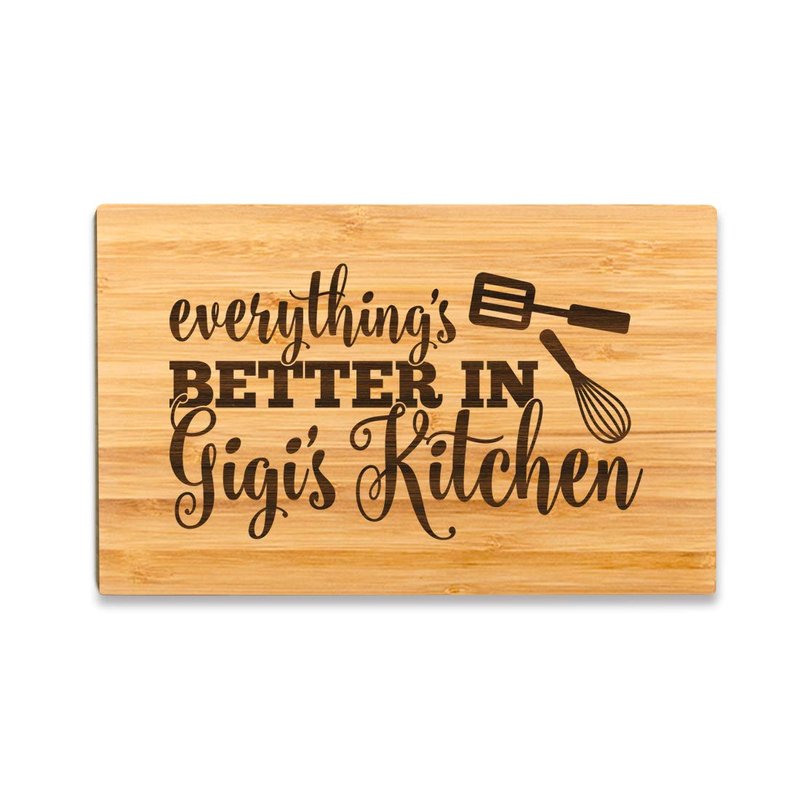 Andaz Press Laser Engraved Small Bamboo Wood Cutting Board, 9.5 x 6-inch, Everything is Better in Gigi's Kitchen, 1-Pack Grandma Mother's Day Mom's Birthday Grandma Cutting Board Grandma Gift Ideas
