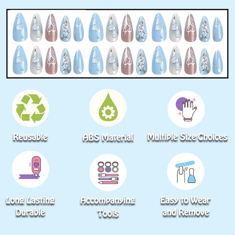 24pcs durable acrylic press on nails with tools, handmade from professional ladies.