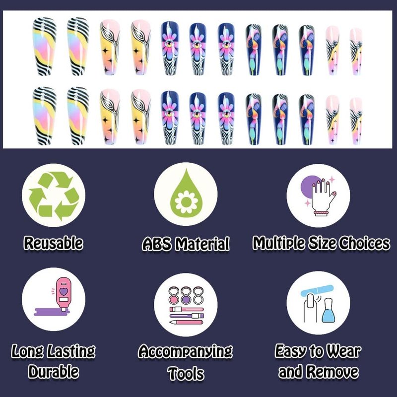 - [Safe and Sturdy Design] Unique micro-thickening design to prevent fake nails tips from cracking, acrylic nails environmentally friendly, they are harmless to humans, children and pets and gentle to your nails and skin. Manual brush gel treatment on the nail surface, pattern printing is clear and not easy to fade, providing you with a safe and comfortable nail experience.