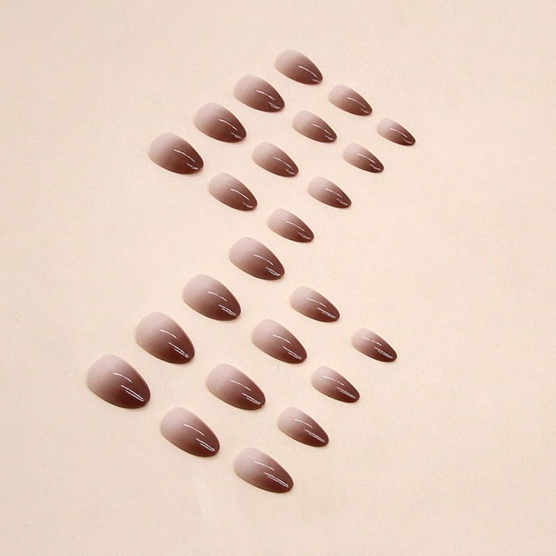 ANDGING Brown Press on Nails Almond Short Ombre Glue on Nails with Gradient Design Fake Nails for Wedding Birthday Women Manicure Acrylic False Nails 24Pcs Gel Stick on Nail with Glue AGJ68OP