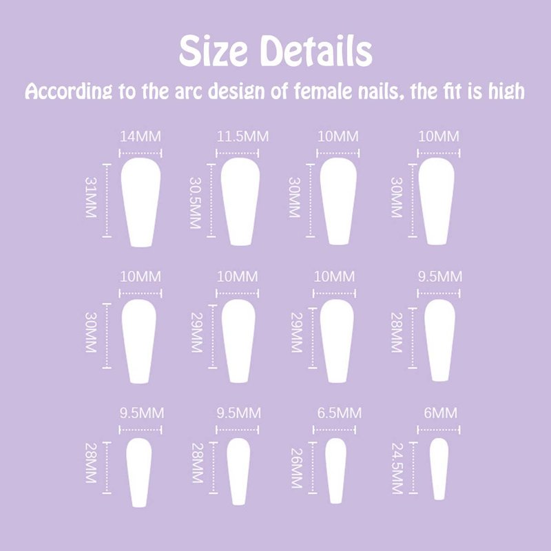 - [Safe and Sturdy Design] Unique micro-thickening design to prevent fake nails tips from cracking, acrylic nails environmentally friendly, they are harmless to humans, children and pets and gentle to your nails and skin. Manual brush gel treatment on the nail surface, pattern printing is clear and not easy to fade, providing you with a safe and comfortable nail experience.