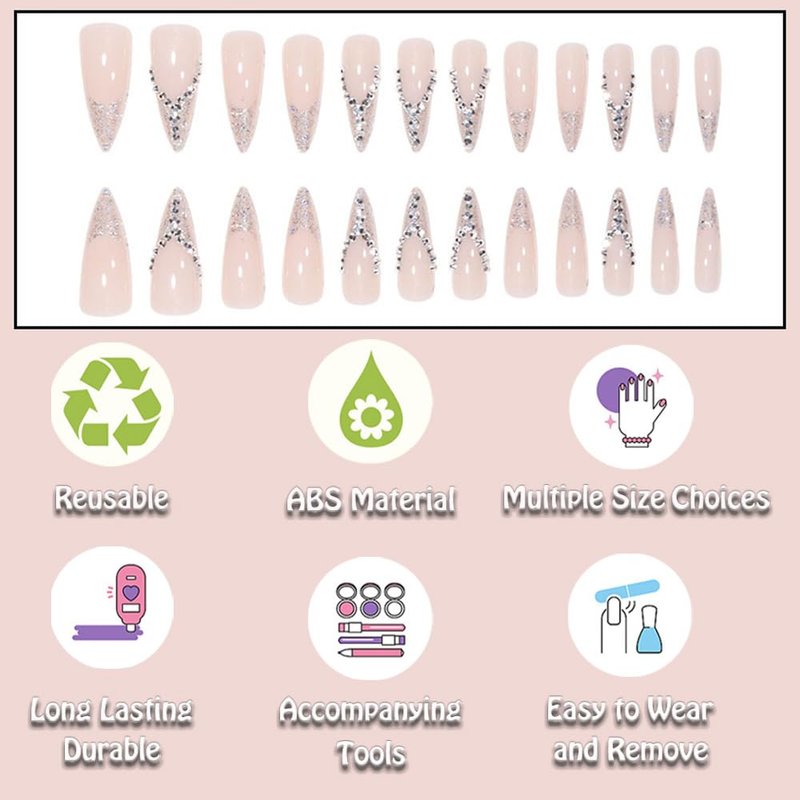 - Style: Silver Press on Nails Stiletto