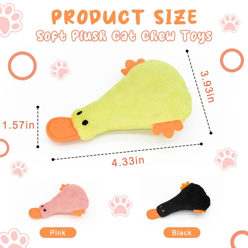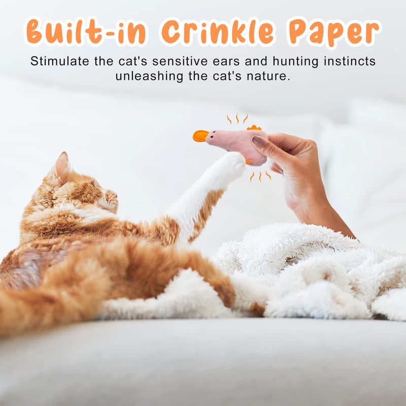 Andiker Cat Catnip Toys, 3Pcs Cat Interactive Toys for Indoor Cats, Soft Plush Cat Chew Toys with Crinkle Paper for Relieve Stress, Reduce Boredom, Teething (Duck)