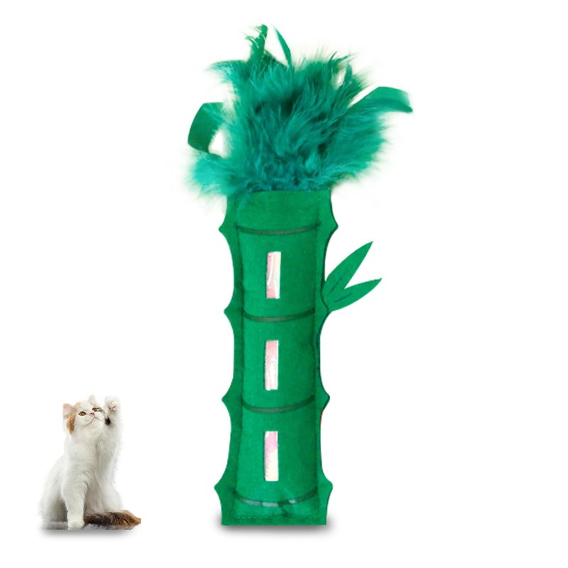 - Exquisite Bamboo Shape: The toy simulates the bamboo design. There are lush feathers on the top of the toy. You can use the feather to draw your cats' attention. Feathers on the toys can stimulate cats to play and exercise. We believe that your cats must be interested in our cute cat toy